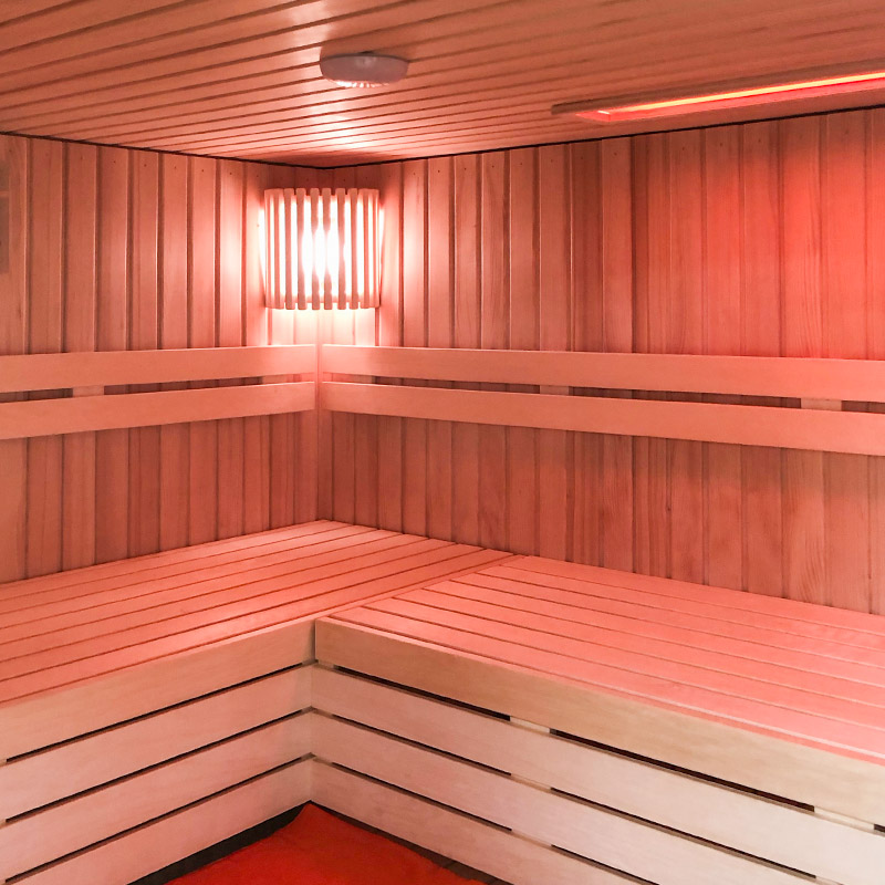 216 x 174 x 220 cm Innenverkleidung und Bankanlage in feinen Weißtannen-Lamellen, bodentiefe Glasfront über zwei Ecken, EINHEIZER-Technikpaket mit verdecktem SECURTHERM – Heizsystem, Smartphone-Steuerung mit App per BT und mit digitaler Bedieninnenanzeige, Soft-LED-Rückenlehnenbeleuchtung und Zubehörpaket.