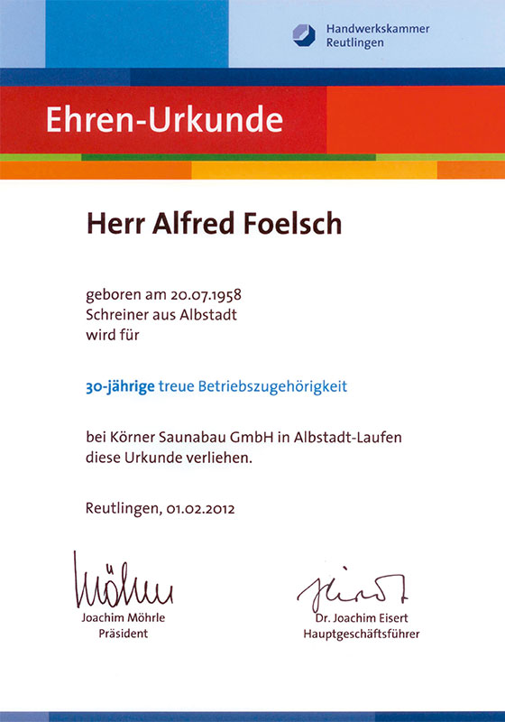 Vielen Dank für die Zusendung und die kulante Abwicklung unseres hölzernen Aufgussbechers. Auch nach zwei Jahren Saunavergnügen, sind wir uns noch immer sicher, mit Ihnen den richtigen Partner an unserer Seite zu haben. Wir sind noch immer sehr zufrieden und bei unseren beiden kleinen Anliegen haben Sie uns wirklich sehr kundenorientiert und zufriedenstellend betreut. Wir werden und können Sie nur weiterempfehlen. Wünsche Ihnen weiterhin gute Geschäfte.